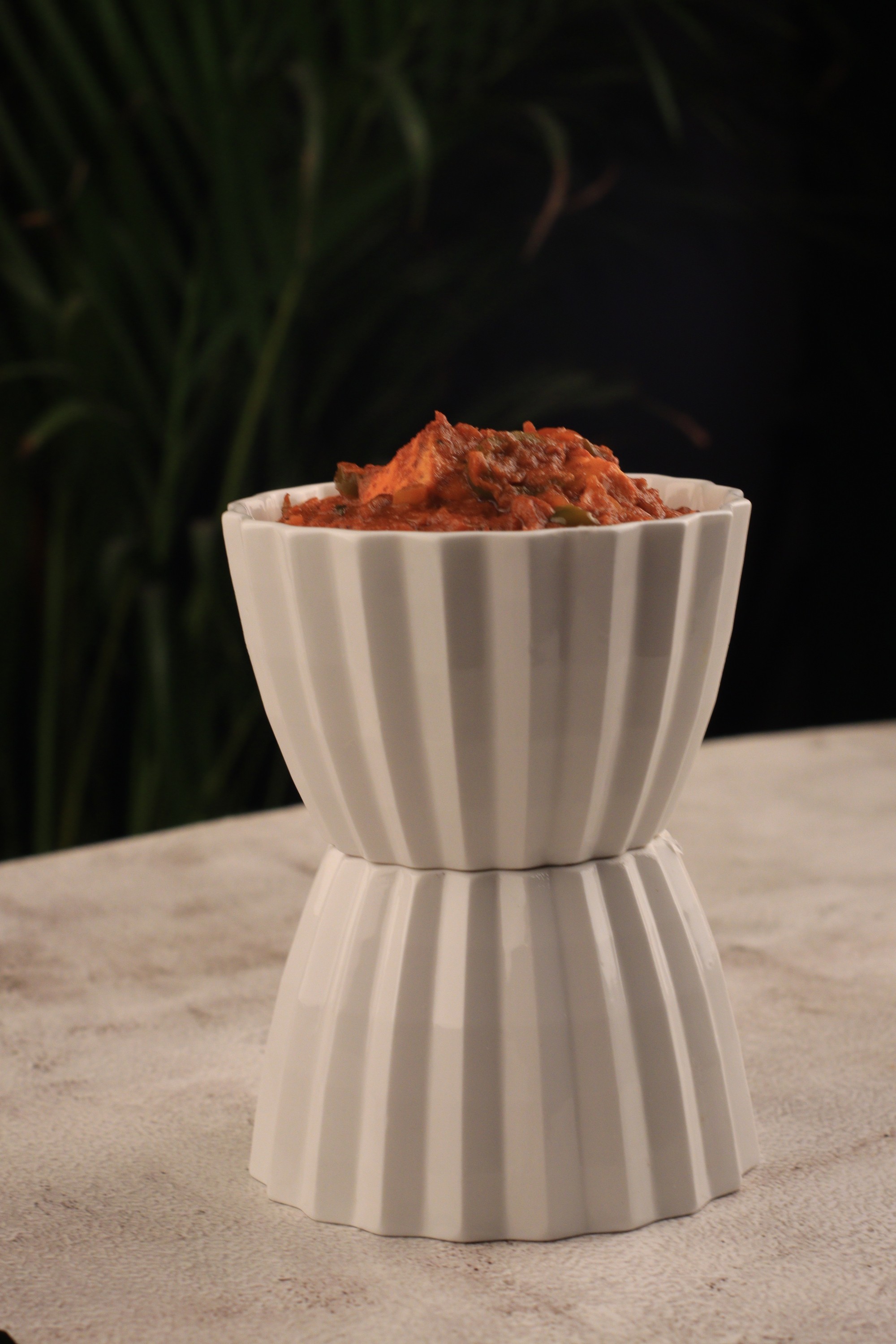 The final form offers tactile interest, stackability, and a strong presence, ideal for contemporary dining aesthetics.
